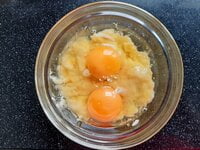 - Voeg het ei-bananenmengsel toe en leg de deksel op de pan.